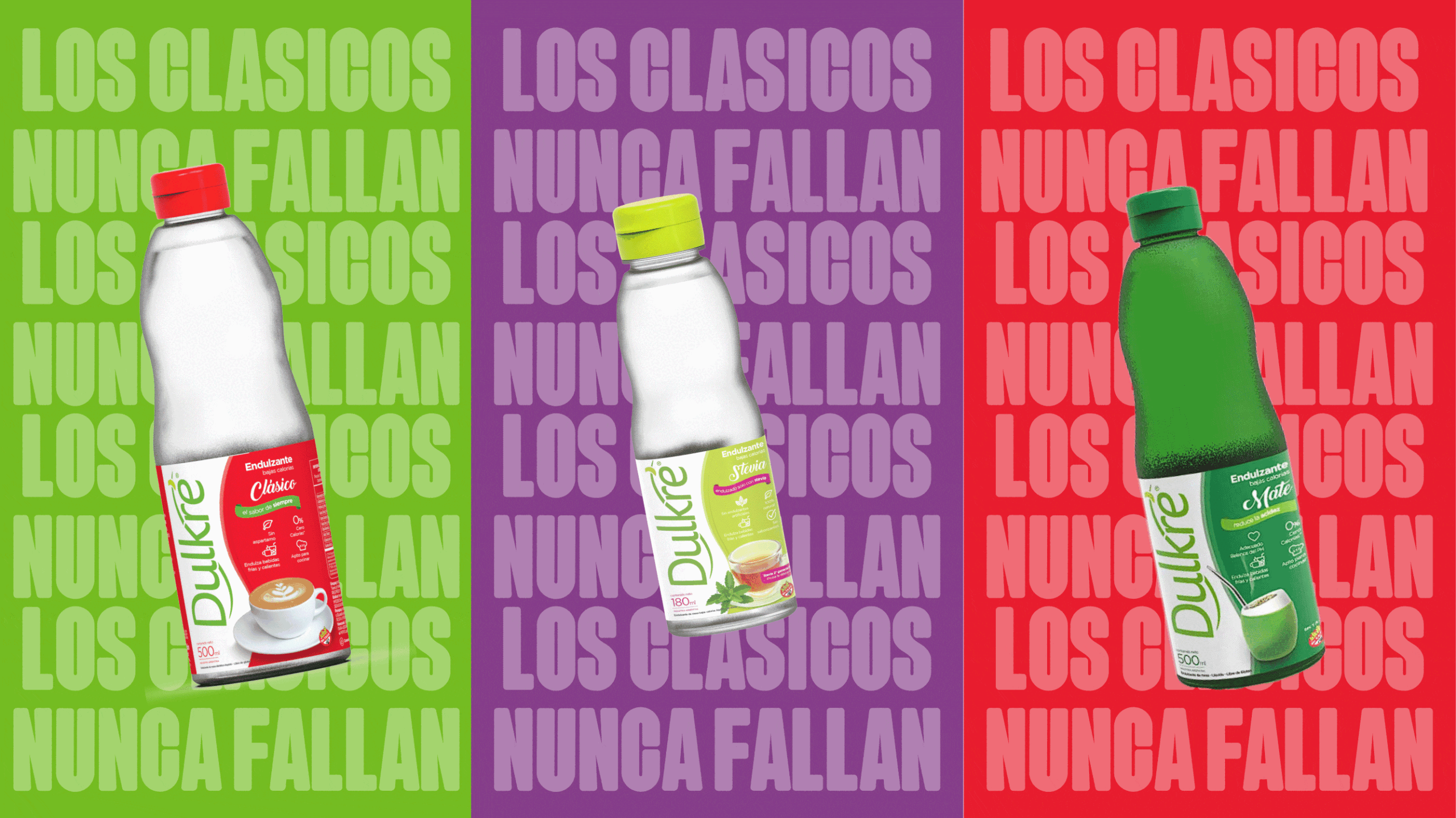 Dulkré, el del sobrecito de edulcorante de tu bar favorito, ahora está en tu casa. ¡Y en todos tus lados!: en tu lado saludable, en tu lado natural, en tu lado matero, en tu lado más dulce. Porque el sabor de siempre ahora lo elegís vos. Dulkré, la familia más completa de endulzantes bajas calorías.