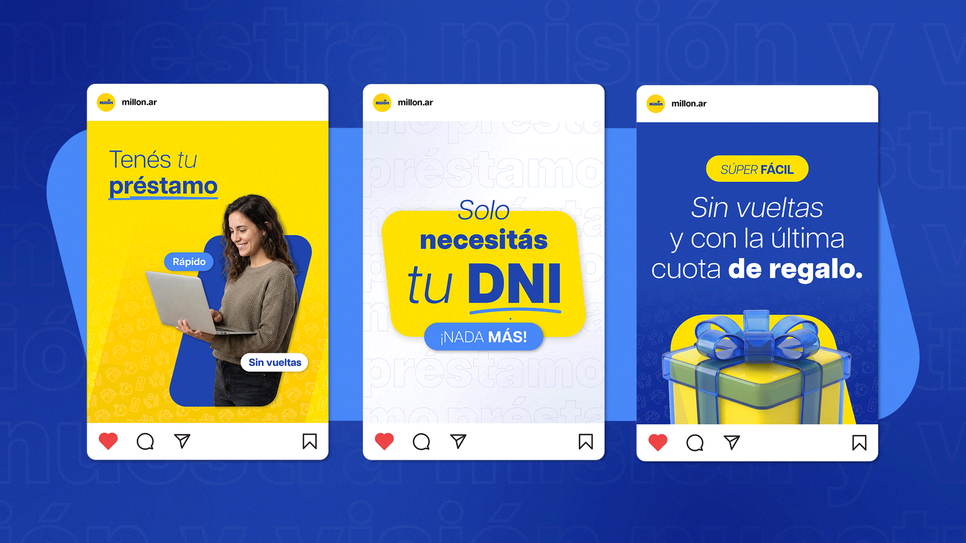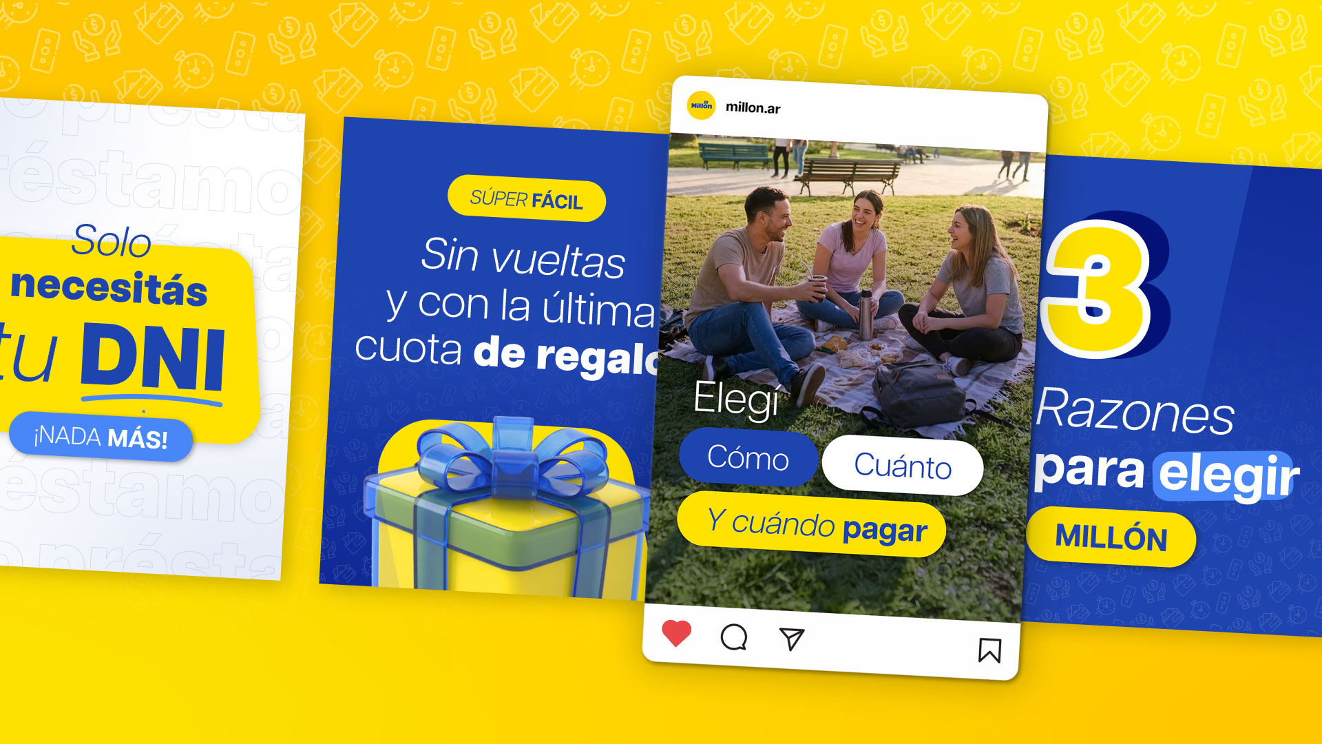 Rebranding completo de Millón, creación de una identidad más clara y cercana, junto con un sistema UI moderno y escalable para su plataforma de préstamos.